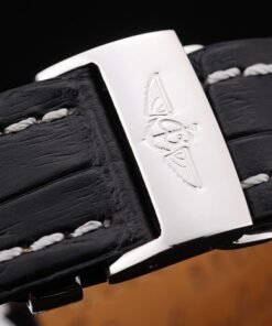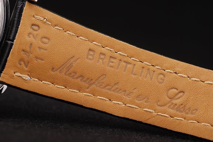 Bracelet de acero inoxidable: El calor en relieve correa de piel de cocodrilo negro Breitling con costuras de hilo blanco y un logotipo de Breitling grabado plegable en acero clasp