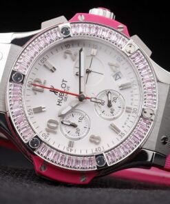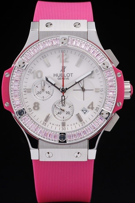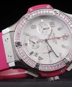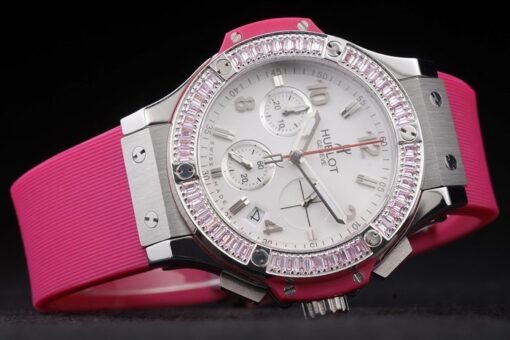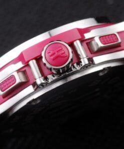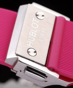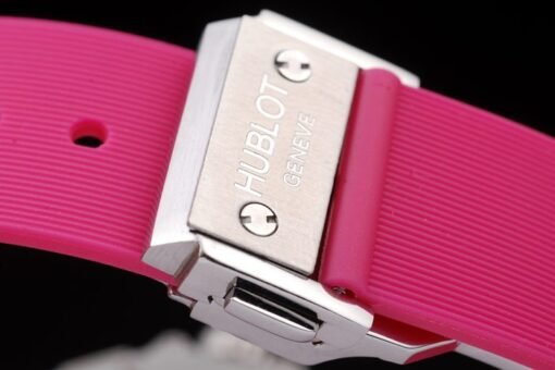 Bracelet: banda de goma de color rosa textura con pulido pulsador de acero inoxidable cierre de gancho y Hublot engravings