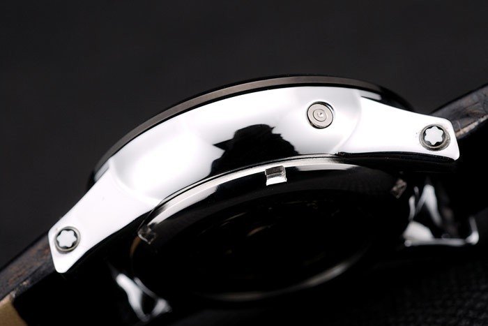 Crown: enchapado en ion corona de calado con el logotipo de Montblanc y dos coronas de acero inoxidable pulido pulsadores a ambos lado de it