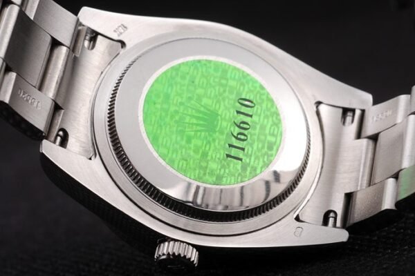 Volver: Acero inoxidable empuje en caso de vuelta con el verde Rolex logo stamp