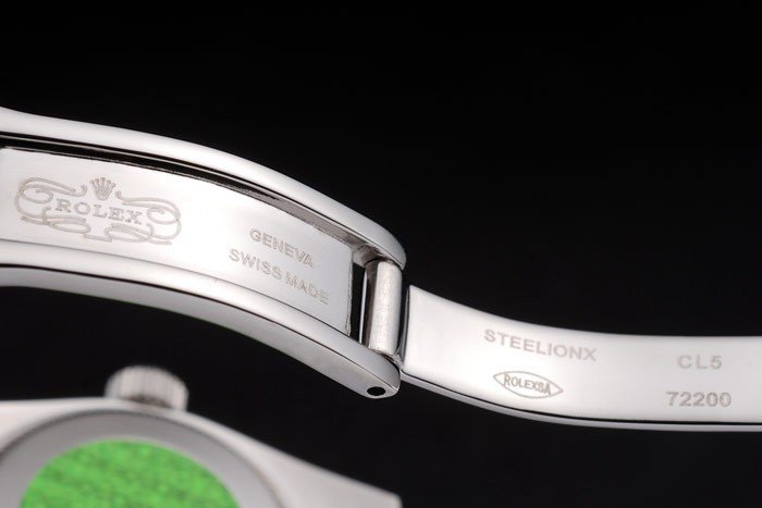 Volver: Acero inoxidable empuje en caso de vuelta con el verde Rolex logo stamp