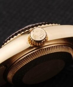 1Back: Empuje hacia atrás en oro amarillo de 18 quilates con la etiqueta engomada Rolex verde y markings