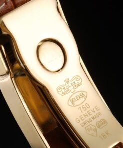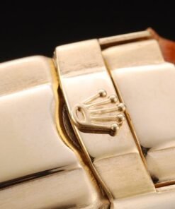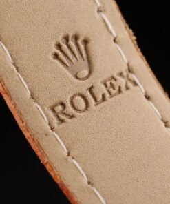 Bracelet: correa de piel de cocodrilo marrón en relieve de calor Rolex con grabado cierre desplegable de oro amarillo con el logotipo de Rolex en top