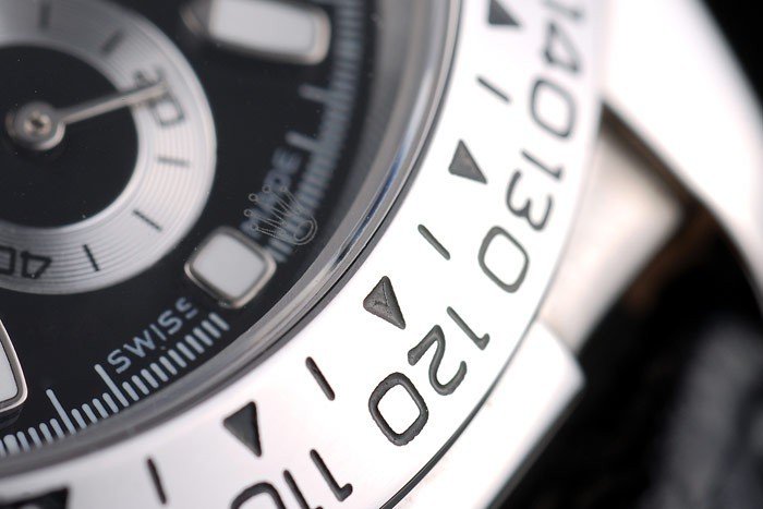 Crown: pulido corona calado de acero inoxidable con el logotipo de Rolex y dos coronas de botón de empuje calado más pequeños a cada lado de it