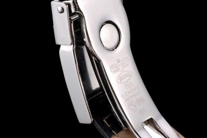Bracelet acero inoxidable cepillado: Correa Rolex de calor en relieve de cocodrilo negro de cuero con grabado cierre desplegable de acero inoxidable con el logotipo de Rolex en top