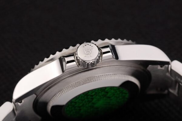 Back: Empuje en acero inoxidable de nuevo con la etiqueta engomada verde Rolex y markings