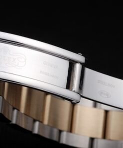 Bracelet de acero inoxidable: Acero inoxidable cepillado y el enlace de oro rosa pulsera Rolex con el grabado en el interior de la hebilla de despliegue y el logotipo de Rolex en top