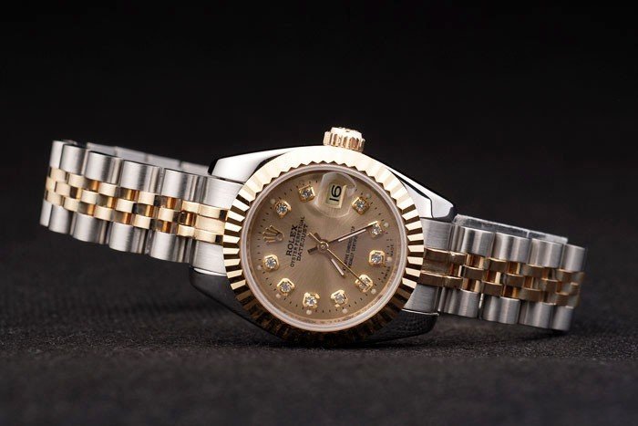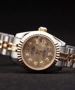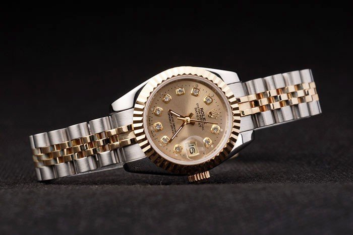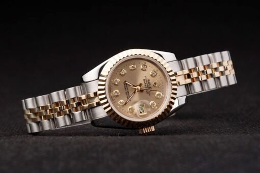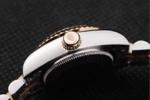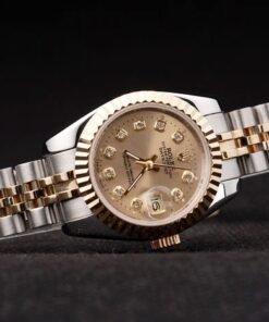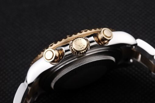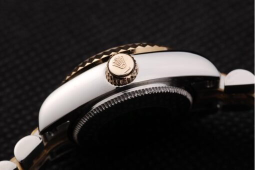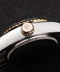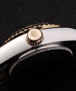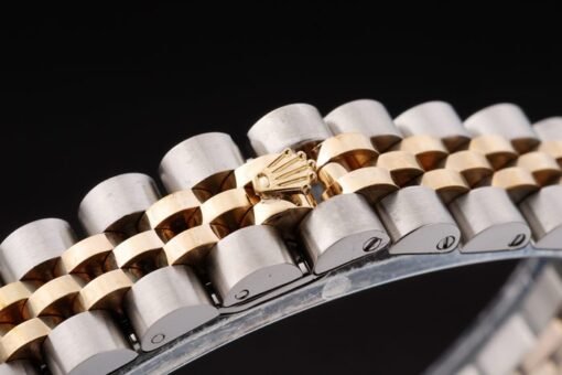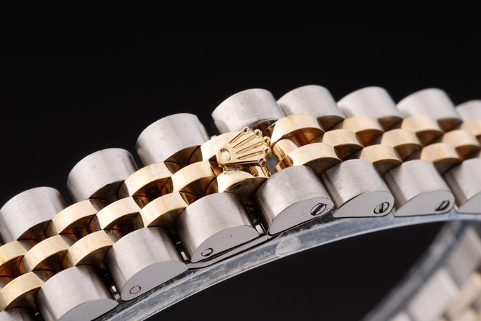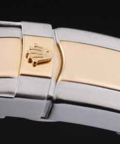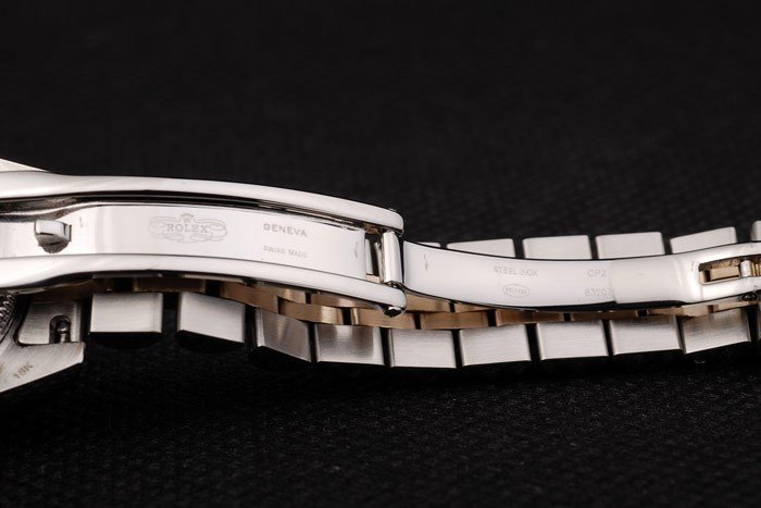 Bracelet de acero inoxidable: acero inoxidable cepillado y oro rosa acoplamiento de la pulsera con el grabado Rolex en el interior de la hebilla de despliegue y un logotipo de Rolex en top