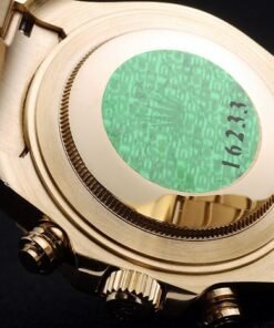 Volver: amarillo-oro de empuje en la parte trasera con el verde Rolex logo stamp