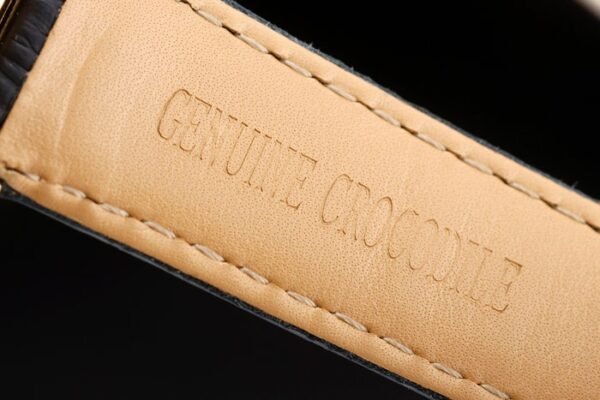 Elaborado en Suiza, certifié pulsera de acero inoxidable Bisel correa Marrón Cuero Blanco Dial 80285