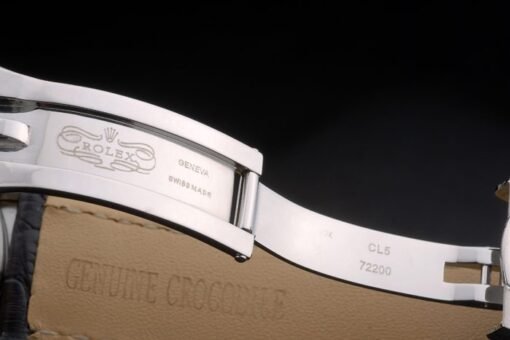 Bracelet de acero inoxidable: correa de piel de cocodrilo negro de calor en relieve Rolex de acero inoxidable pulido Rolex logo tallado clasp